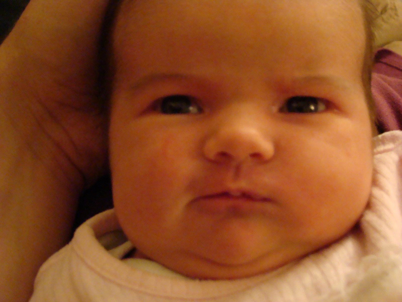 Well actually I thought she was done nursing but when I brought her to my shoulder to burp she promptly latched on to my cheek. :) When she realized it was dry she tried my nose and seemed rather amazed that after all that effort neither produced anything. :)